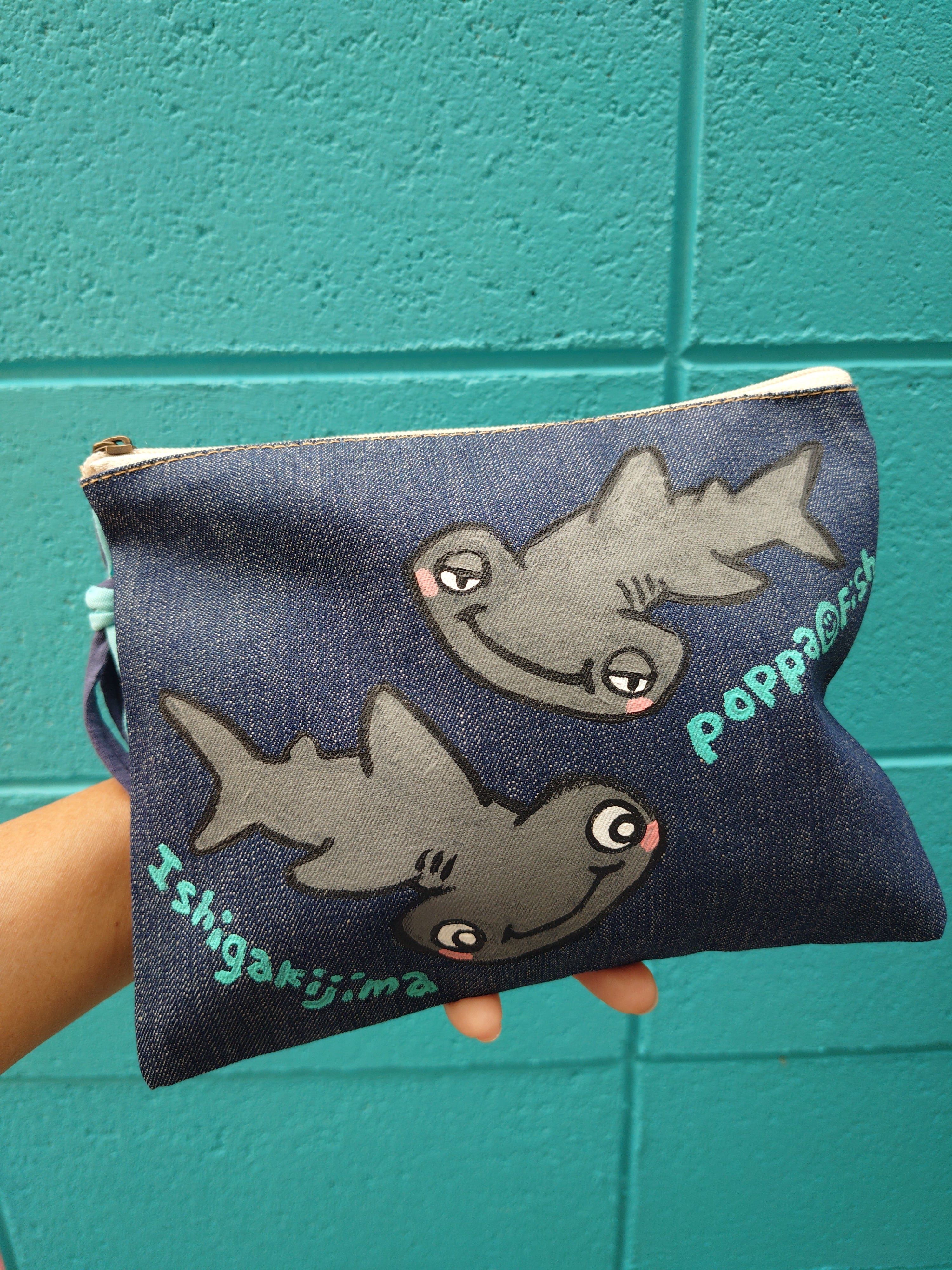 お魚デニムポーチМ ハンマーヘッドシャーク